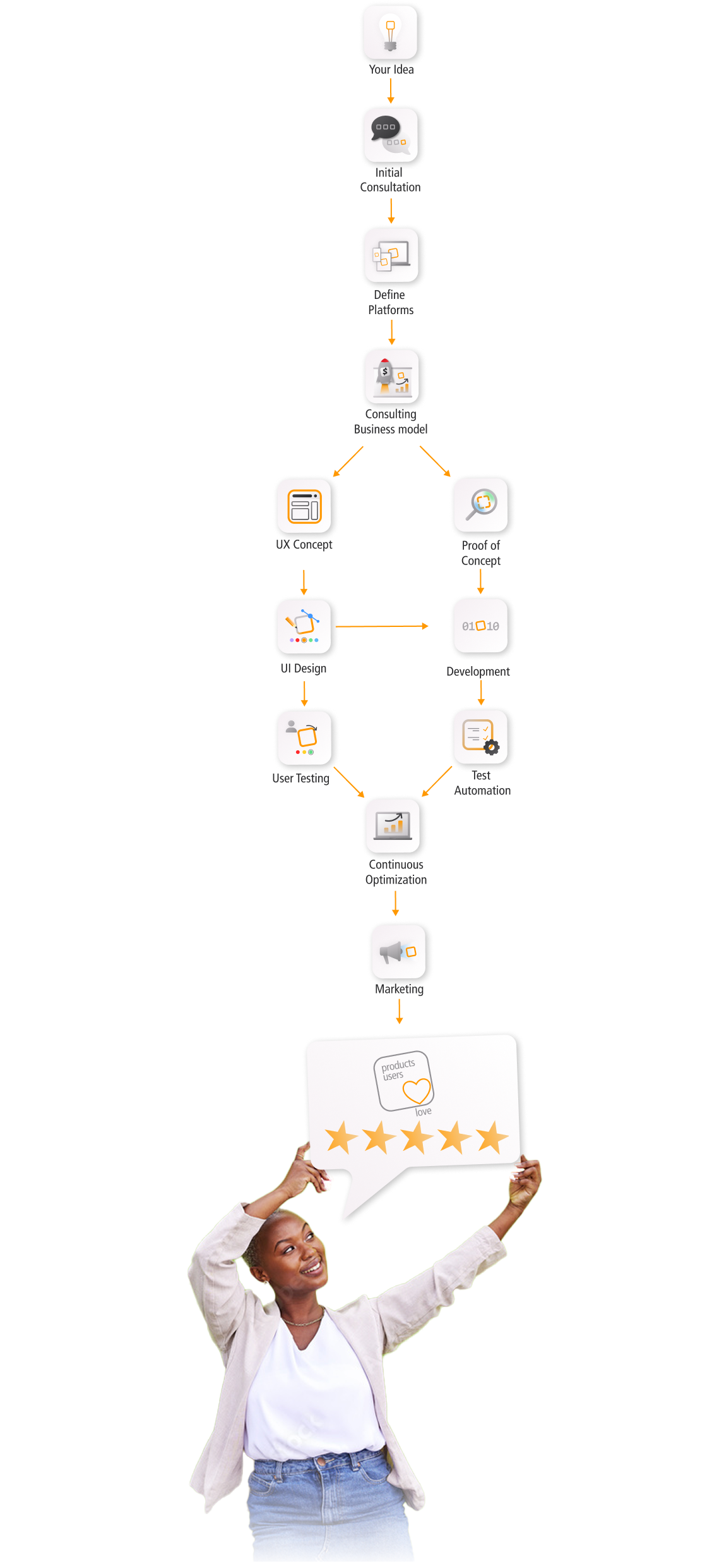 Our goal is to translate your vision into intuitive, aesthetic, and functional designs that strengthen your brand and create lasting impact. Because in the end, it’s all about developing “products users love” – for you and your users.